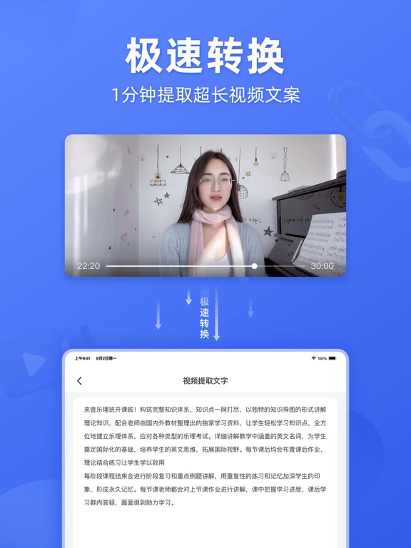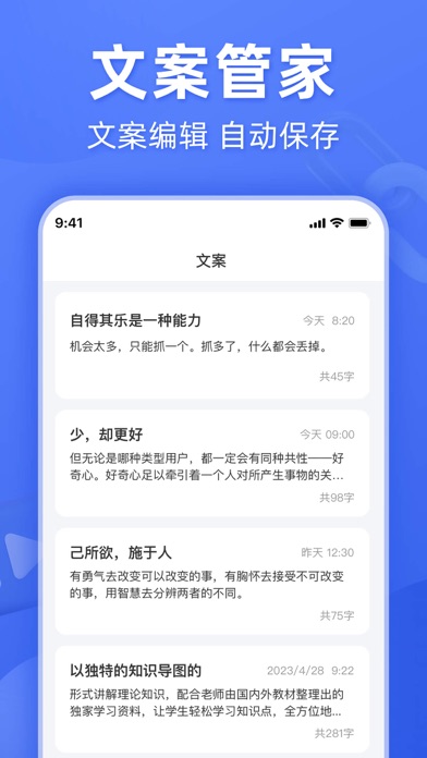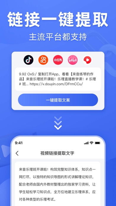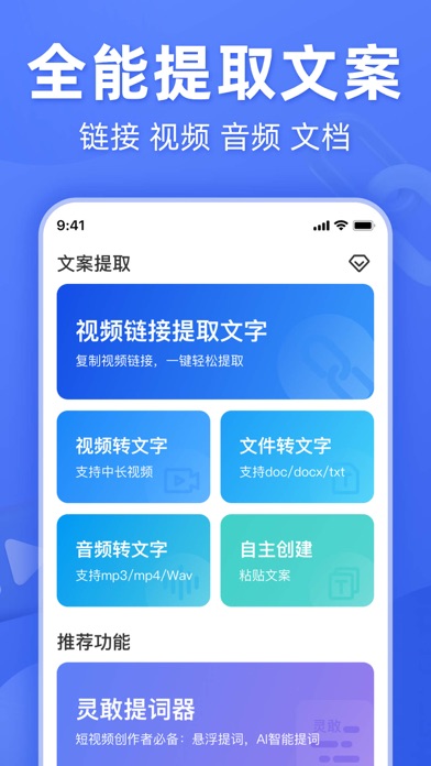 灵敢文案app是一款专业且高效的文案提取编辑工具,支持音视频链接、文件中文案的提取,帮助你快速完成文案的创作。 【支持多种形式】主流平台的音视频链接、Mp3/Mp4/Wav、Doc/Docx/Txt文档 等; 【使用简单】复制链接,一键完成提取; 【极速提取】2小时长视频文字提取仅需1分钟,准确率极高; 【文案管家】文案编辑自动保存,方便管理不丢失; ---------- 隐私政策:https://base.quthing.com/base/agreement/privacy.html?appPackage=copywriting_ios&appChannel=AppStore 用户协议:https://base.quthing.com/base/agreement/user.html?appPackage=copywriting_ios&appChannel=AppStore产品功能优化,提升使用体验