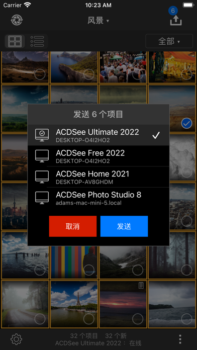 ACDSee 同步助手让您能够通过 Wi-Fi,轻松将相片和视频从移动设备导入 Mac电脑上的 ACDSee Photo Studio 和Windows电脑上的ACDSee 2023中。 发送相片就像数数一样简单! 1. 选择您要发送的项目 2. 点击“发送”按钮 3. 确认目标并点击“发送” ACDSee 同步助手会跟踪已发送的项目。点击“发送”按钮,即可发送所有新项目,或选择要发送的项目。长按应用中的“发送”按钮,或使用 iOS 主屏幕上的“发送新项目”快捷键,即可将所选项目快速发送至您的默认目标位置。 高级功能: *基于预定义模板的可配置文件名和子文件夹 *可选择发送相片和视频的原始版本或已编辑版本 *支持 RAW 和 HEIC 格式的相片,可选择转码为 JPEG 格式 *配置支持实况照片和连拍图像 *内置元数据编辑器,可将 GPS 和 IPTC 元数据以及评分和标签添加到相片 ACDSee 同步助手目前适用于Mac电脑上的ACDSee Photo Studio for Mac 8及以上版本和Windows电脑上的ACDSee 2023。您可随时通过 acdsee.cn 下载最新版本。修复已知问题。
