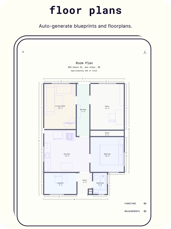 使用Polycam捕捉3D世界! Polycam在新的苹果设备上使用LiDAR传感器,使您能够快速创建物体及空间的彩色3D扫描。 Polycam的色彩引擎 经过优化,可在最短的时间内生成最高质量的彩色3D扫描。单人房拍摄仅需几秒钟即可完成,所有计算都可以在您的设备上安全地进行-无需互联网连接。可以进行或处理的扫描无数量限制。 Polycam 3D捕捉的尺寸也很精确,使您可以轻松地测量任意两点之间的距离。测量通常精确到大约一英寸或几厘米。 在此处网站查看Polycam捕获的示例:https://skfb.ly/6WD8G 专业版用户有很多导出扫描数据的选项。 Polycam当前支持: *将网格数据导出为.obj,.glb,.usdz,.dae和.stl或直接上传到Sketchfab *将色点云数据导出为.dxf,.ply,.las, .xyz和.pts *将平面图数据导出为.dae 我们很高兴看到您用Polycam创造的模型!如果您在线分享某些内容,请在Twitter @PolycamAI上为我们添加标签,让我们知道您所捕获的内容! 隐私政策:https://polycam.ai/privacy_policy.pdf 使用条款:https://polycam.ai/terms_and_conditions.pdf 视频音乐:https:/incompetech.com/* Virtual Walkthrough is available on business and enterprise * Fixed Pro users seeing paywall on ‘Upload photo & video’ option * Minor bug fixes and performance improvements