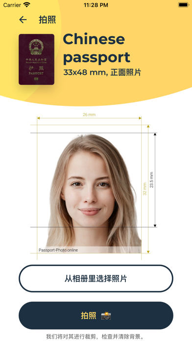 在家就能拍出专业的证件照!!该应用软件还会自动编辑您的照片,使其更符合官方要求。 只需先自拍一张照片,然后将照片上传到我们的应用软件,您就会得到为您的签证、护照、驾驶证、身份证,或者其他证件生成的标准照片。 我们将保证您的照片背景不仅符合要求,同时也保证符合每个国家所要求的尺寸。错误修复和小的改进。