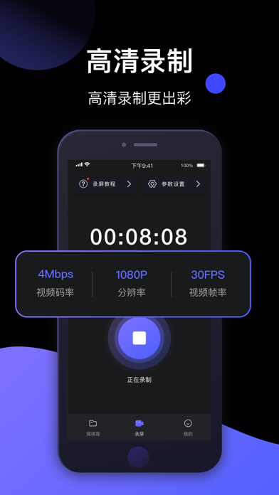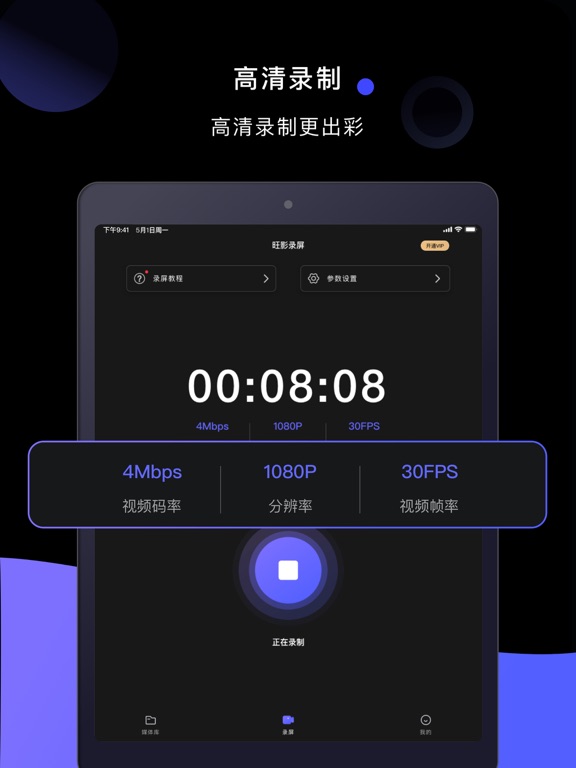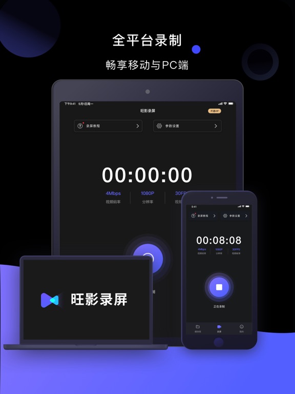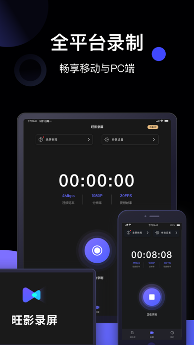 旺影录屏是一款稳定强大的手机屏幕录制软件,你可以通过这款软件录制超清视频,并设置分辨率、码率、帧率等参数,轻松记录课程、游戏、娱乐的精彩瞬间。 【应用场景】 游戏录制:高帧率流畅录制游戏画面 教程录制:超清录制在线课程内容 影视录制:录制同时一键截图精彩影视内容 【功能特点】 ——功能更专业 多种分辨率、码率、帧率参数调配; ——录制更随心 自定义设置横屏或竖屏录制; ——全平台录制 畅享移动及PC端。 【联系我们】 我们秉承“用心、专业、热情、沟通”的宗旨为您提供服务,如有任何问题,欢迎咨询我们的客服QQ:4009998105。 【会员订阅】 1、开通旺影录屏会员后,您可使用全部功能且录制视频无默认水印限制; 2、旺影录屏提供不同会员套餐,您可按季订阅; 3、您的订阅付款将在确认购买时由iTunes账户收取,包月或包年套餐会在到期前24小时内续订,扣费成功即成功续订会员; 4、您可以随时在Apple ID账户设置中管理您的订阅; 5、若您不想自动续订,需在当前订阅周期到期前24小时之前,手动在设置管理中取消自动订阅。 用户协议:https://www.luping.com/terms/user-agreement 隐私政策:https://www.luping.com/terms/privacy