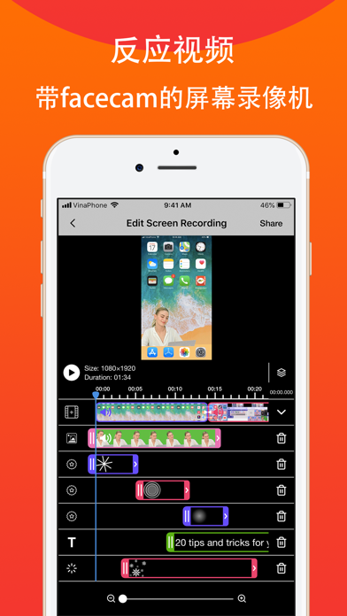 录制完屏幕后,您可以添加带有音频评论的视频反应,以进一步增强录制效果! Recordora功能: +使用iOS 11全局屏幕录制API录制全屏视频 +使用音频评论为录音添加视频反应。非常适合游戏会话,视频教程或演示。 +使用我们的视频剪辑功能,视频旋转和视频滤镜来编辑您的视频! +通过简单的访问,在一个简单的应用程序中组织您的录音 +通过电子邮件或AirDrop共享并将您的录音导出到其他应用程序。您还可以通过WiFi或任何其他应用程序将录制内容导出到计算机,以进行更专业的视频编辑。 按照我们的2步指南开始录制您的屏幕,只要您打开我们的应用程序即可。 视频反应是为视频录制添加个性的完美方式。您可以为录制内容添加视频反应,以便观众可以在您玩喜欢的游戏时观看您,或者只是录制应用演示(完美展示您的朋友如何完成任务,或者如何在游戏中获得完美的分数) )。 组合是无止境的,只需下载并亲自尝试。 屏幕录像机高级版 我们目前提供以下自动续订订阅选项: 3天免费试用,然后每周2.99美元 3天免费试用,然后每月9.99美元 通过订阅,您可以无限制地访问音乐,贴纸,效果并保存无限制的视频。 付款将在确认购买时从iTunes帐户中扣除。除非在当前期间结束前至少24小时关闭自动续订,否则您的订阅将自动续订。您的帐户将在当前期间结束前24小时内收取续订费用。可以管理订阅,并且可以在购买后转到帐户设置来关闭自动续订。在有效订阅期间,不允许取消当前订阅。 •如果提供免费试用期,任何未使用的部分将在用户购买该出版物的订阅时被没收(如果适用) 使用条款:https:/tos.vidanimate.co 隐私政策:https:/privacy.vidanimate.co-Bug fixes and improvements