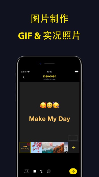 WooGIF Pro,使用图片、视频、实况照片快速制作GIF和实况照片。 特色功能: ### GIF动图制作 ### • 图片制作GIF动图,逐帧编辑,添加文字,调整帧率。定格动画快速制作表情包。 • 视频片段、实况照片转GIF动图,调整帧率和倒放效果让您的动图更有趣。 • 多种GIF动图特效,快速制作酷炫效果。 • 使用文字制作快捷回复表情包。 ### 实况照片制作 ### • 图片逐帧编辑制作实况照片。 • 视频制作实况照片。 • 动态壁纸制作。 ### 动图拼接 ### • 多个动图、视频、实况照片拼接成一个动图或者实况照片。 赶紧去制作属于您的gif动图并分享给好友吧! 感谢您的下载与使用,任何建议和反馈,请直接联系独立开发者邮箱wang434829717@qq.com。Bugs fixed.