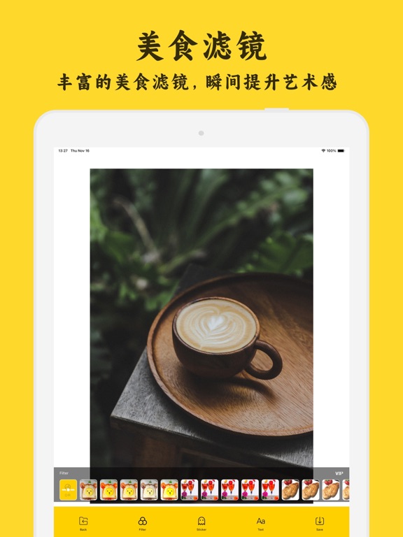美食之影 - 轻松拍摄美食照片,拥有多种滤镜、专业编辑功能、场景多样、个性化贴纸道具。 随时随地,记录美食瞬间。 - 照片编辑功能: 提供了强大的照片编辑功能,让您能够自由地调整照片的各个方面。您可以裁剪、旋转、调整亮度和对比度,还可以添加各种有趣的文字,让您的照片更加个性化。 - 美食模式滤镜: 丰富的美食滤镜,让您的美食照片瞬间提升艺术感。通过选择不同的滤镜,您可以轻松地调整照片的色调、亮度和对比度,让食物更加诱人。同时,滤镜还可以帮助您强调食物的纹理和细节,展现出美食的质感。 - 个性化的美食贴纸: 丰富的个性化美食贴纸,让您可以创意地装饰照片,增添趣味性。通过选择各种可爱的贴纸,您可以随意搭配,让您的美食照片更加生动有趣。 美食之影,帮助您轻松地拍摄出高质量的美食照片,展现出美食的魅力和个性化风格。无论您是专业摄影师还是美食爱好者,这款应用都能满足您的需求。- 应用细节调整。 - 修复Bugs。