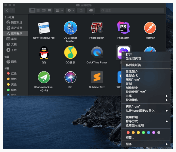 三、打开访达,在右侧菜单栏选中应用程序,找到和彩云图标,右键点击打开