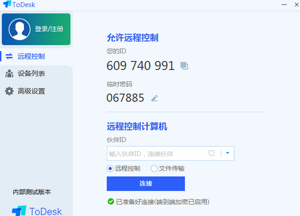 多平台远程控制软件,支持主流操作系统windows、linux、mac、android、ios跨平台协同操作。支持任何网络环境下的远程实现,4.0版本已经开放100台设备列表。todesk设备连接主要通过两台设备进行设备号关联实现,主控设备填写被控设备号即可实现远程控制。