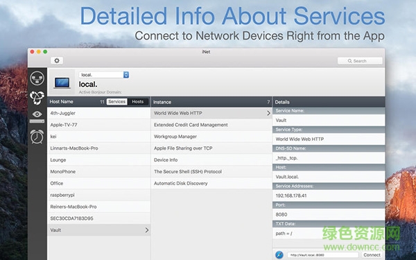 iNet Network Scanner Mac版为您提供有关您Mac网络和您的Mac连接到设备的所有信息。iNet Network Scanner Mac版易于使用和完美贴心的设计甚至可以让没有经验的用户得到一个网络的深刻理解和概述,对正在运行的服务和无线网络连接的质量做出报告。