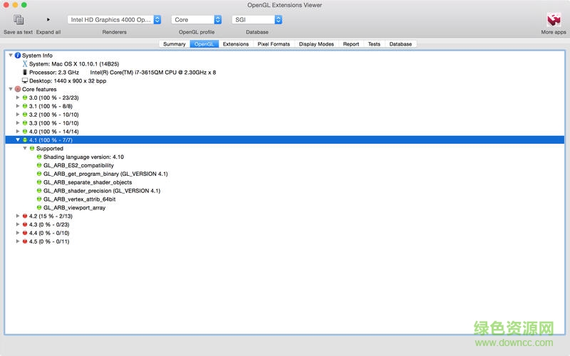 Opengl extensions viewer Mac版能够侦测绘图处理器对OpenGL API的支持等级信息(OpenGL v1.1~v3.0),同时,opengl extensions viewer for mac内含测试功能,推荐大家在全屏模式下进行OpenGL测试,否则分数来去会非常大。