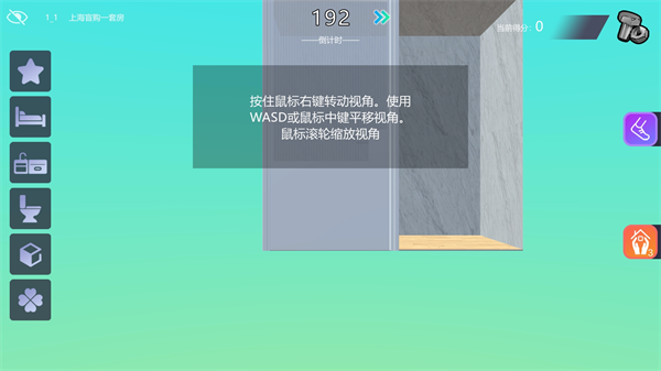 3、进入按住鼠标右键转动视角,使用WASD或鼠标中键平移视角,鼠标滚轮缩放视角;