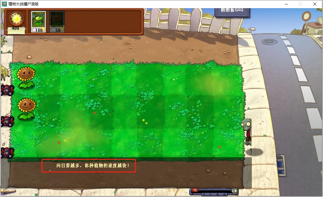 2、该版本与众不同的使如果向日葵越多那么速度回越快,所以我们可以不断的种很多的向日葵;