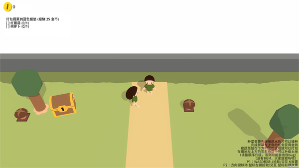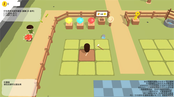 3、一个人种植,另一个人可以做其他的事情或者是打下手,但是视觉不会变大,视角会锁定在1P玩家身上;