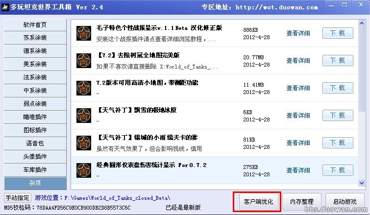 (重要)之前使用过其他优化工具的请还原,否则不能正常的使用优化工具,包子亲测,干净的客户端是完全可以使用优化工具的!