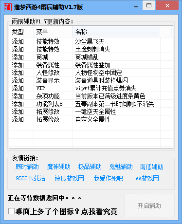 传奇霸业辅助工具是一款功能强大的自动挂机辅助,在这里无论是礼包的领取、每日的自动任务、活动的参与、下副本都非常轻松的就能搞定,功能强大,是您最佳的游戏辅助选择。辅助介绍这款辅助是通过模拟人工手动操作,实现自动打怪,自动挂机等)外挂(改变网络游戏