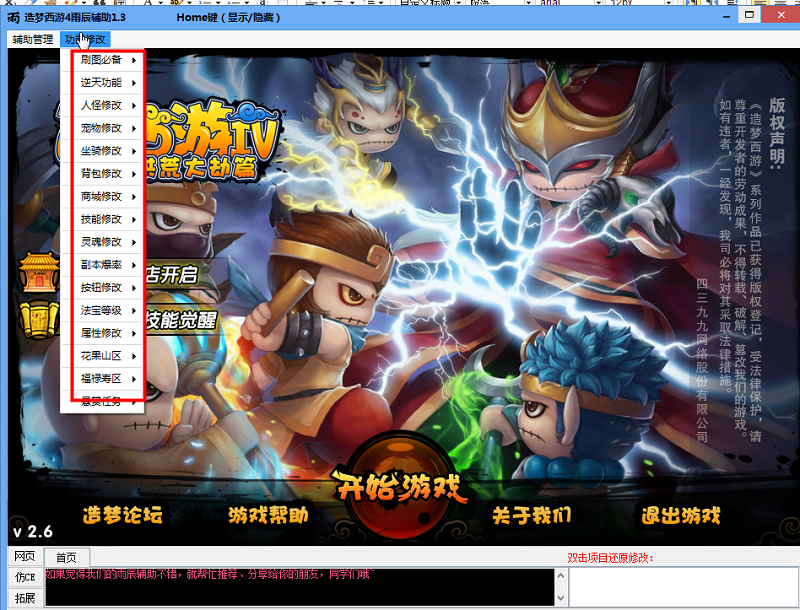 造梦西游4雨辰辅助是专为游戏《造梦西游4》打造的多功能辅助工具。软件支持对坐骑、人物、灵魂、法宝等的修改;还可以修改副本爆率,这样更容易刷到极品装备。如果你觉得皮肤不好看,还可以使用该辅助对皮肤进行修改。赶快下载体验吧!