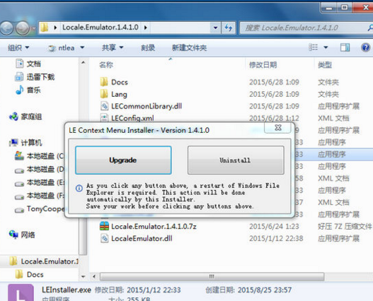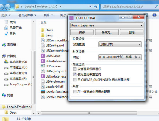 1、先激活你的运行Locale Emulator文件夹下的LEInstaller程序,个人使用即可(only user)。