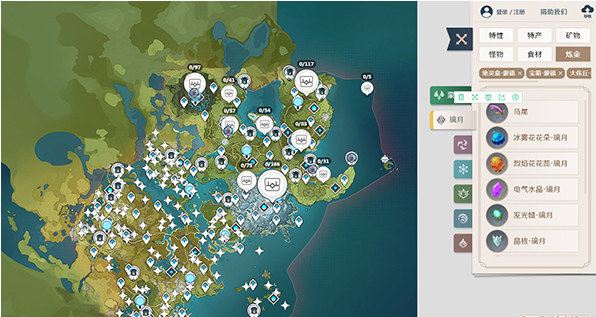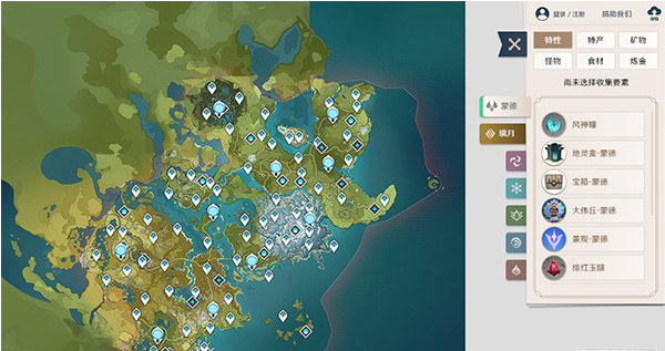1、原神泉合集互动地图工具,标点资源齐全,分发材料,分发作业等;