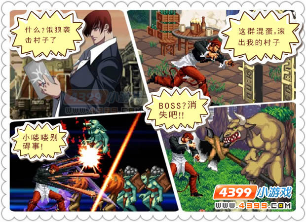 拳皇大战之饿狼来袭是一款动作格斗小游戏,由两款最具人游戏气拳皇与地下城勇士的完美整合,游戏涵盖单人闯关、双人闯关以及PK三种模式,多种武打招式加上地下城与勇士背景音乐是游戏更赋魅力,拳皇人气角色特瑞·伯格登场,强力技能绝对冲击。