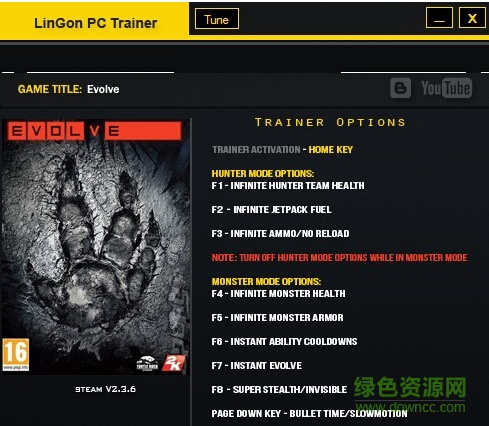 进化Evolve修改器是针对同名pc游戏玩家提供的一款免费辅助工具,通过该辅助玩家可以自由修改游戏中的无限猎人、无限喷气燃料、无限怪物的盔甲等多项参数,合理的修改游戏属性可以帮助玩家更轻松的体验游戏,喜欢的朋友欢迎来下载!