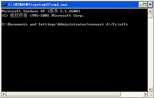 2、开始菜单--运行--输入cmd--输入命令如:convert D:/fs:ntfs(意思是:把D盘转换为NTFS格式)。