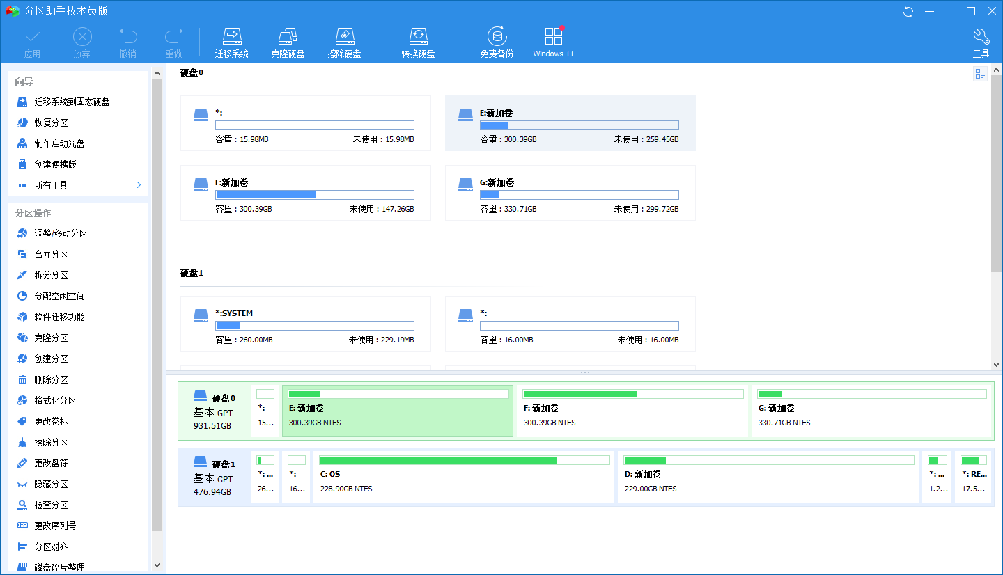 此外它还有许多实用的功能,如数据迁移、制作启动盘、安装Windows到移动硬盘、恢复分区、NTFS与FAT32互转等等,限于篇幅,小编就不细说了。