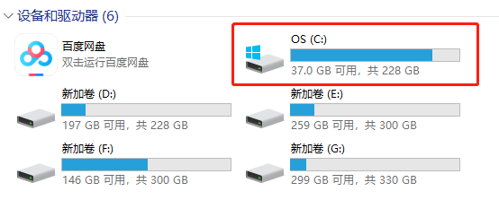 分区助手可以帮助我们在不损失任何数据的情况下,将磁盘完美分区。如图,电脑的C盘原本228GB,现在只剩37GB。
