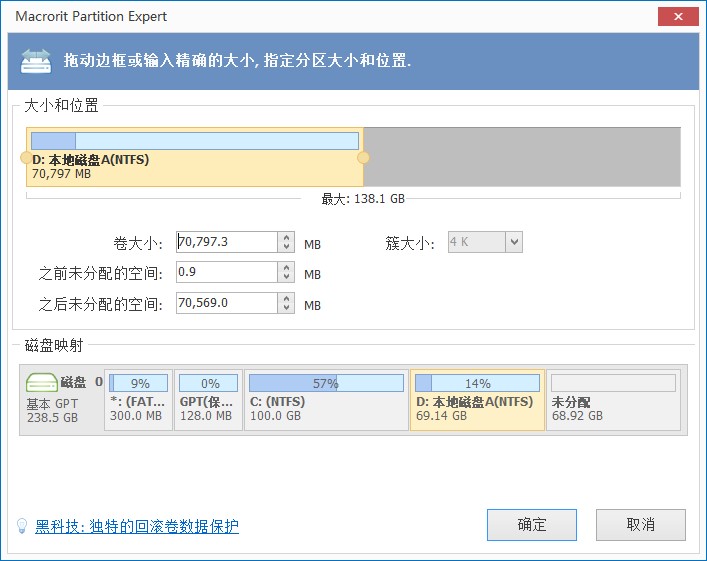 超快速的调整大小、移动和转换分区而不会丢失数据。