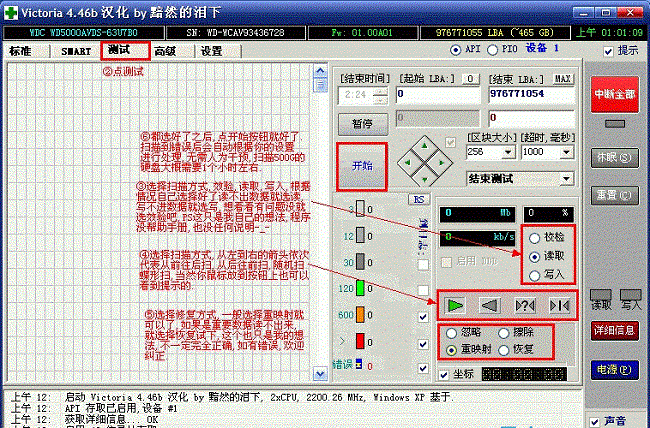 3.第三项是修复的读写方式。用左右键可以选择。左按两次,是进行擦除操作。左按一次,是将文件中的坏道导入到坏道列表中。