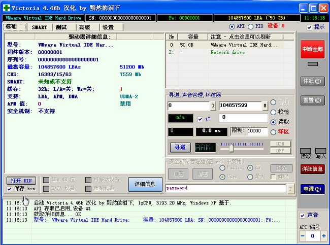 具备硬盘表面检测/ 硬盘坏道修复/ SMART信息察看保存/ Cache缓存控制等多功能的工具,是真能修复扫描坏道,不是什么效率源或者hd tune这些浅度扫描坏道能比的。支持众多型号硬盘解密;支持全系列检测和修复。