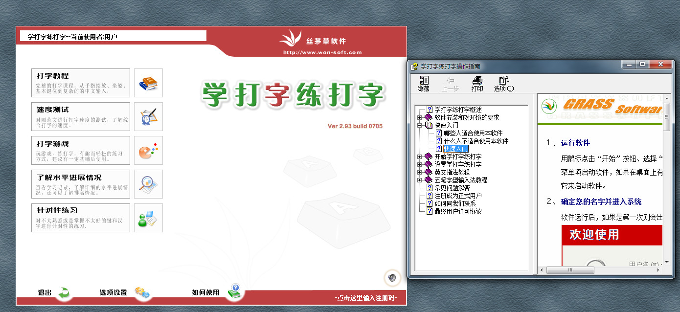1、功能强大的五笔字根、简码教学,指法教学;