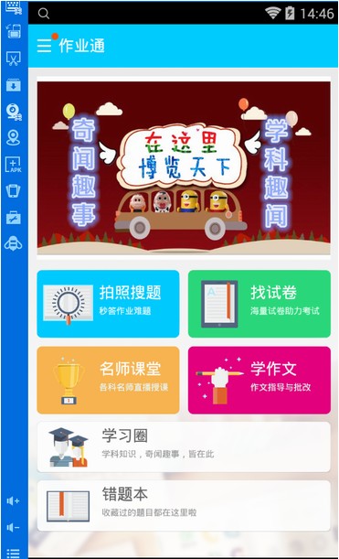 作业通电脑版是通过安卓模拟器而制作的一款写作业必备神器,通过文字和拍照搜索题目,能够提供从小学到高中的全科题库,支持数、理、化、生、地、作文等科目,并且拥有答案、思路、解析一应俱全,是你学习的好帮手。
