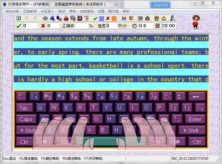 5、中、英文测试,实时显示速度、正确率,并自动计算综合得分