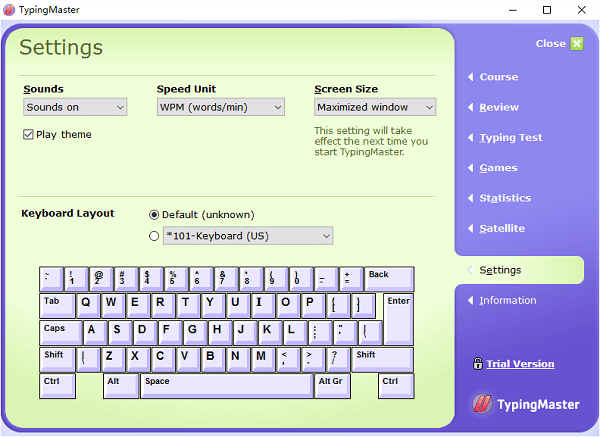 typingmaster pro 免费版是一款非常好用的打字学习软件,这款软件优势在于不仅可以让你进行指法练习,而且会有不断复习的过程,然你不会忘记。并且每一个单元都有相应的测试。喜欢的话就爱来下载试用吧!