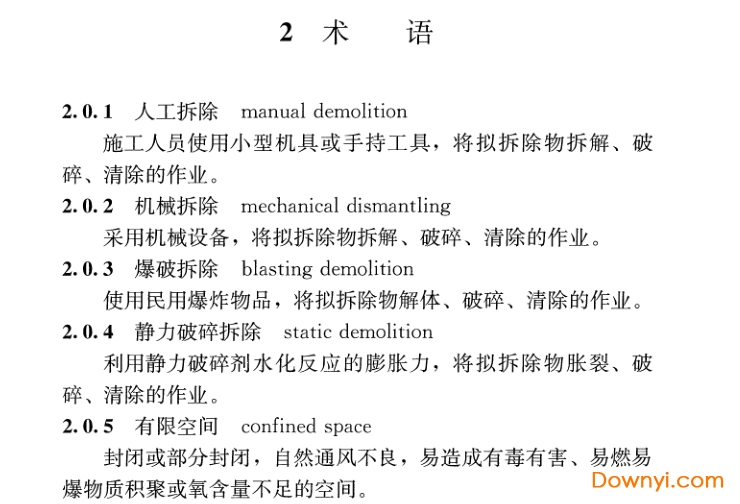 3.“机械拆除”一节中新增关于机械设备前端工作装置作业高度要求等条文;