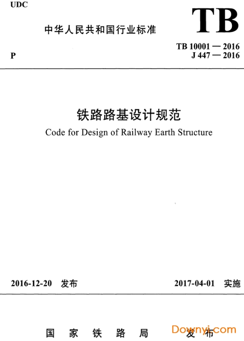 tb10001-2016铁路路基设计规范是一款最新实行的建筑规范,由中铁第一勘察设计院集团有限公司主编,设计荷载、工程资料、基本规定等等,你想知道的这里全都有。欢迎来下载!