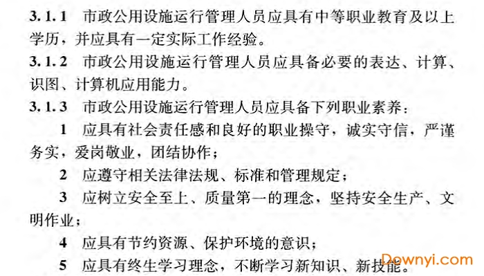 1.0.1 为加强市政公用设施运行管理人员队伍建设,指导运行管理人员的培训与使用,提高运行管理人员的职业能力水平,保证市政公用设施运行质量、生产安全、节能环保,制定本标准。