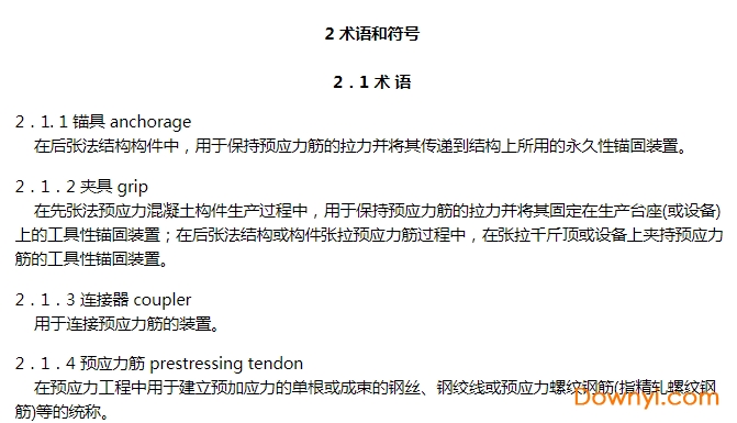 7、在锚具设计选用方面,增加了冷铸锚、热铸锚、压接锚具,取消了钢质锥形锚具;