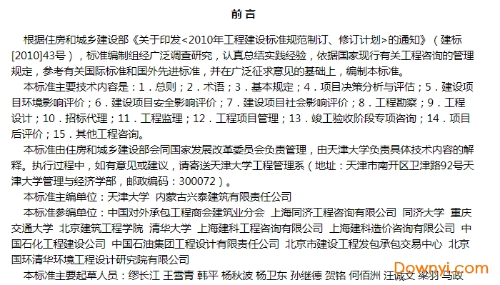 根据住房和城乡建设部《关于印发2010年工程建设标准规范制订、修订计划的通知》(建标[2010]43号),标准编制组经广泛调查研究,认真总结实践经验,依据国家现行有关工程咨询的管理规定,参考有关国际标准和国外先进标准,并在广泛征求意见的基础上,编制本标准。