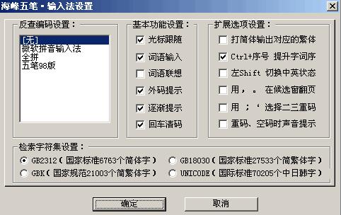 4、两种可选的编码方案:86版(传统五笔)和98版。