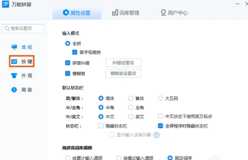 2、在菜单内选择按键按钮。