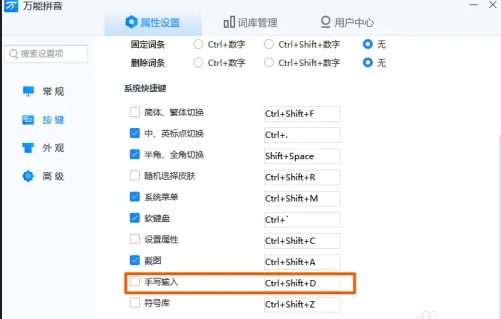 3、在系统快捷键菜单中勾选其手写输入。