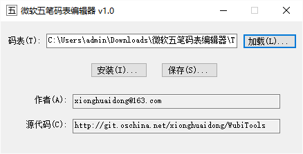 2、可以是二进制格式,这是本程序生成的,或微软五笔自带的*.lex文件。请确保加载的二进制码表没有损坏,否则安装后可能发生不可预知的错误。