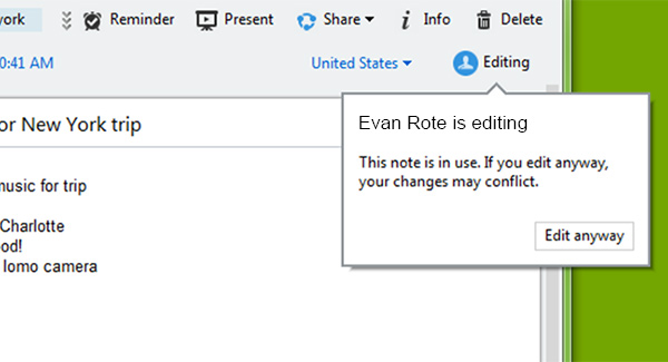印象笔记在2012年10月推出了共享笔记本功能,允许不同用户之间共同编辑一个笔记本,实现团队协作办公。