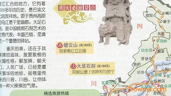 重庆旅游地图高清版为你提供了一个非常清晰的旅游景点图,全重庆的旅游景点都标注了出来,而且不同级的都有不同的标注。如果你想去重庆玩,现用这张地图看一看还是不错的!