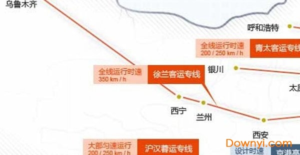 徐兰客运专线由郑徐客运专线、郑西客运专线、西宝客运专线、宝兰客运专线组成,全长约1606公里,连接西北和华东地区,全线时速250-350km/h。