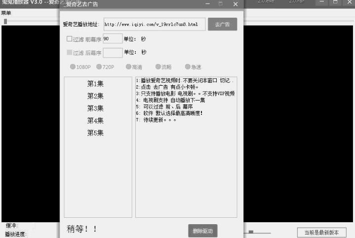 1:新增加爱奇艺去广告,只支持播放电影,电视剧。。不支持VIP视频 ,
