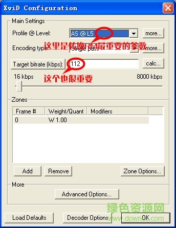 2、Codec编码方式选择XVID mpeg-4 codes。