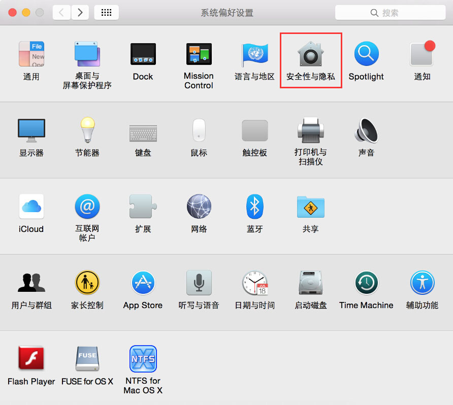 修改系统配置:系统偏好设置... - 安全性与隐私。