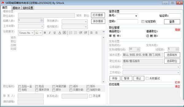 58招聘助手是一款针对58同城所开发的招聘辅助软件。58招聘助手拥有多种模板,能够帮助用户轻松快速的发布各种信息,操作简单,十分省时省力,是一款非常棒的软件。喜欢就来试用使用吧。