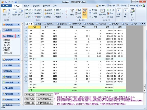 利用Foxtbale的汇总模式,可以随心所欲地对数据进行统计,而你要做的只是单击几次鼠标,无需编写任何代码。