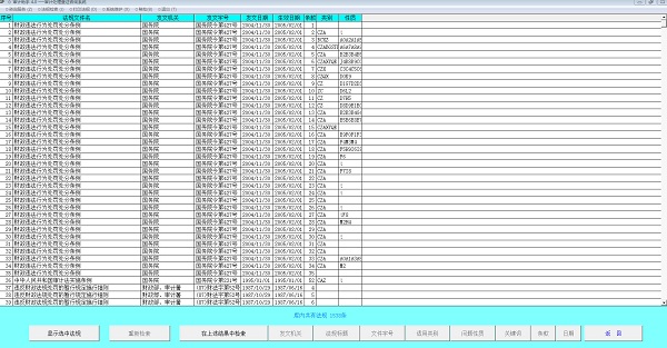 6、法律法规查询、维护:提供部分常用法律法规查询;常见违反财经法规行为的定性和处理、处罚参考依据查询;用户可以自由增减、修改法规库内容;可以备份用户自定义法规库数据